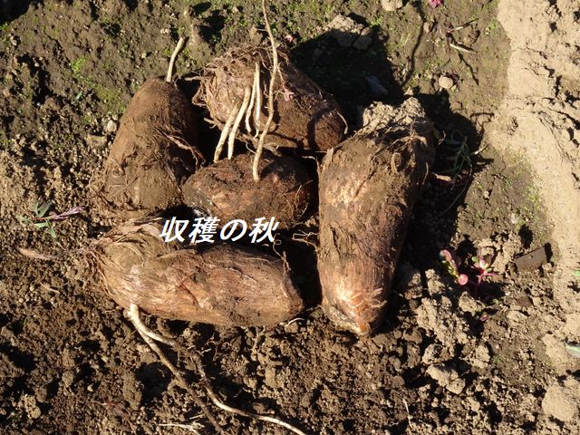 1個収穫と言っても、里芋は地下でいくつもの実をつけているので里芋の個数は数個になります。